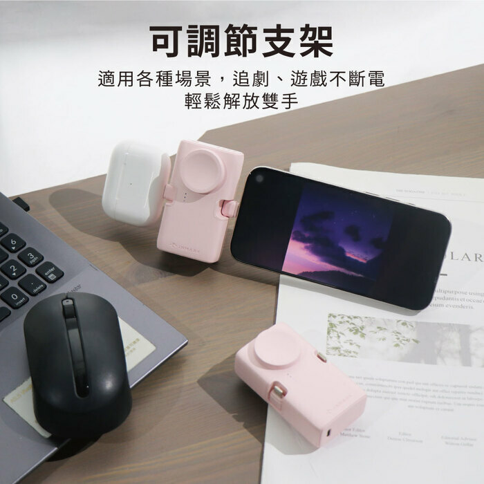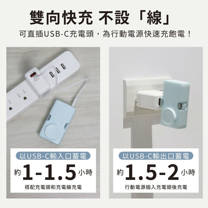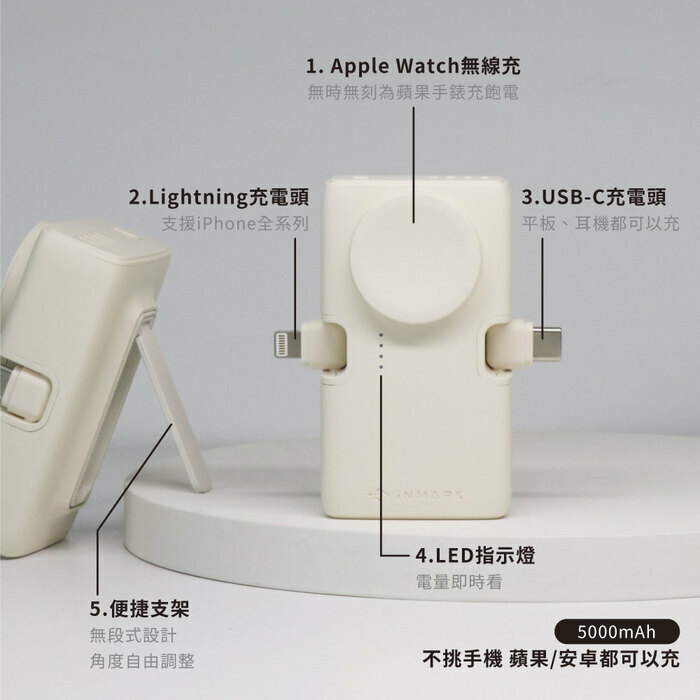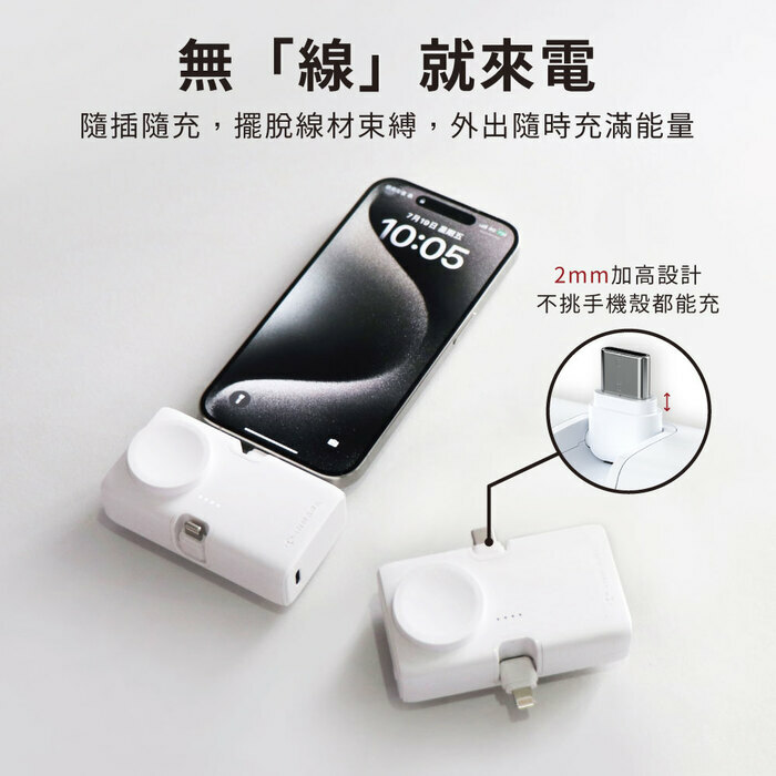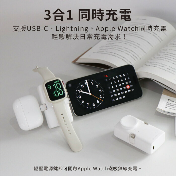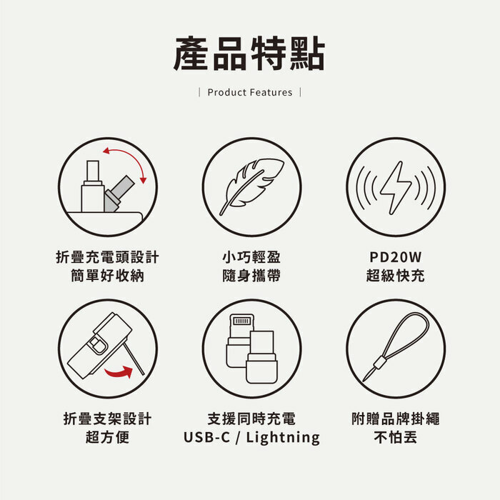 .可折疊收納接口,支援USB-C、Lightning同時充電