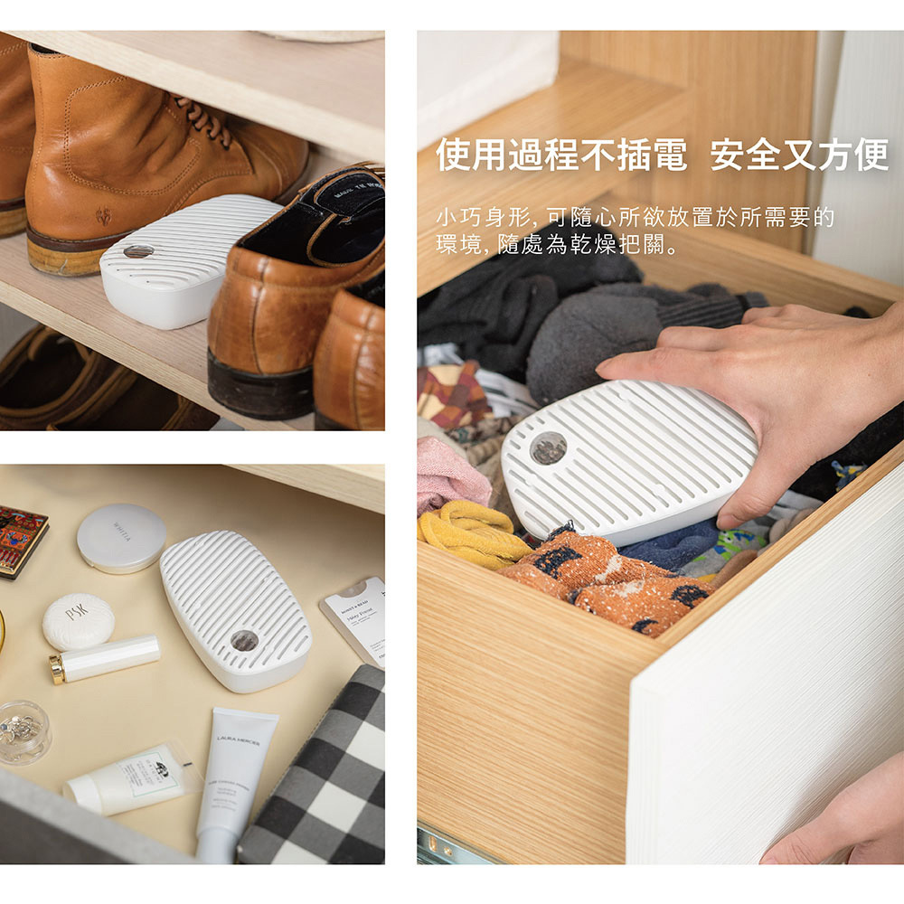 • 除濕過程無需插電,安全更安心