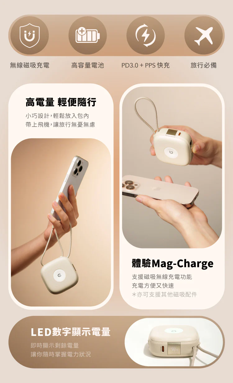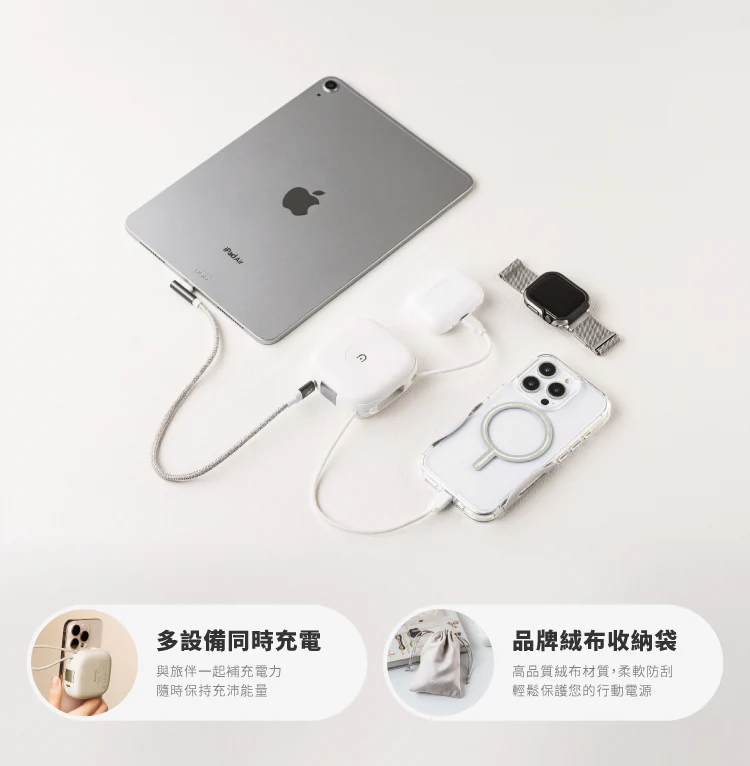 ※ 本產品白色和奶茶色分別有「Type-C to Type-C」和「Lightning to Type-C」兩種充電線規格,請務必看清楚再下單唷!
